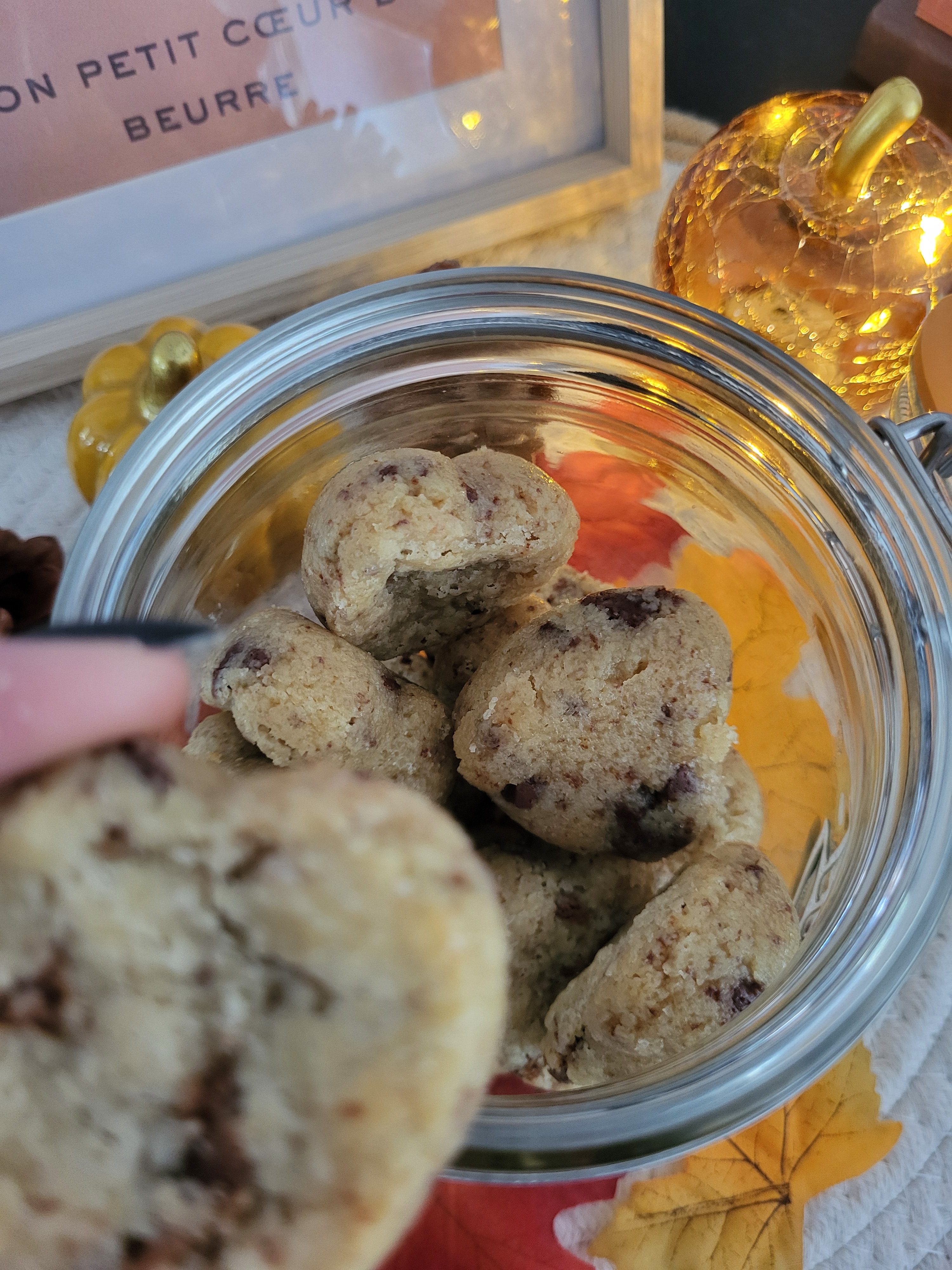 Chaque mini cookie est préparé avec le même soin que mes grands formats : du bon beurre, des ingrédients choisis et… beaucoup d’amour.