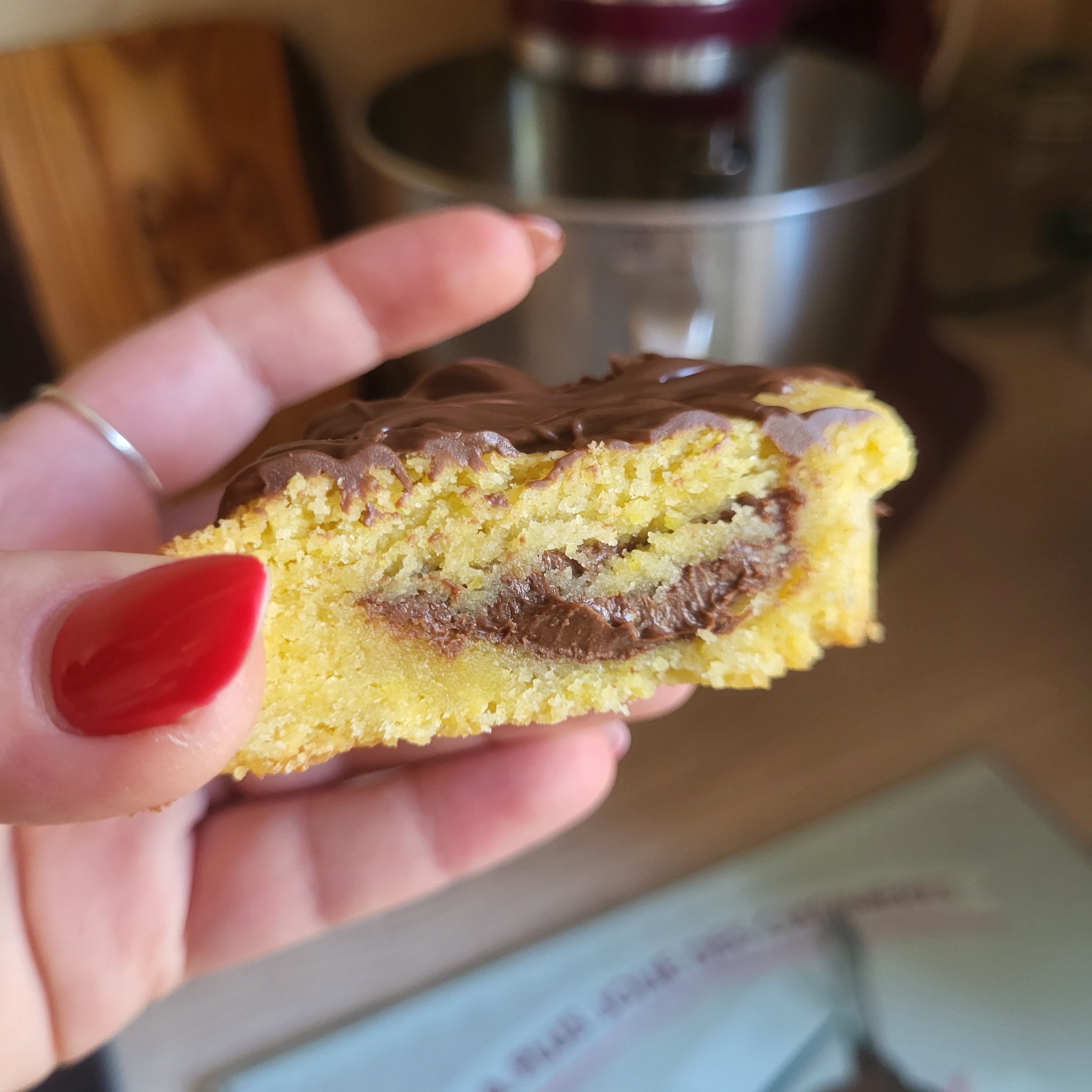 Ingrédients : Farine de blé, Œufs, Sucre blanc et roux, Beurre, Pâte à tartiner Bio.